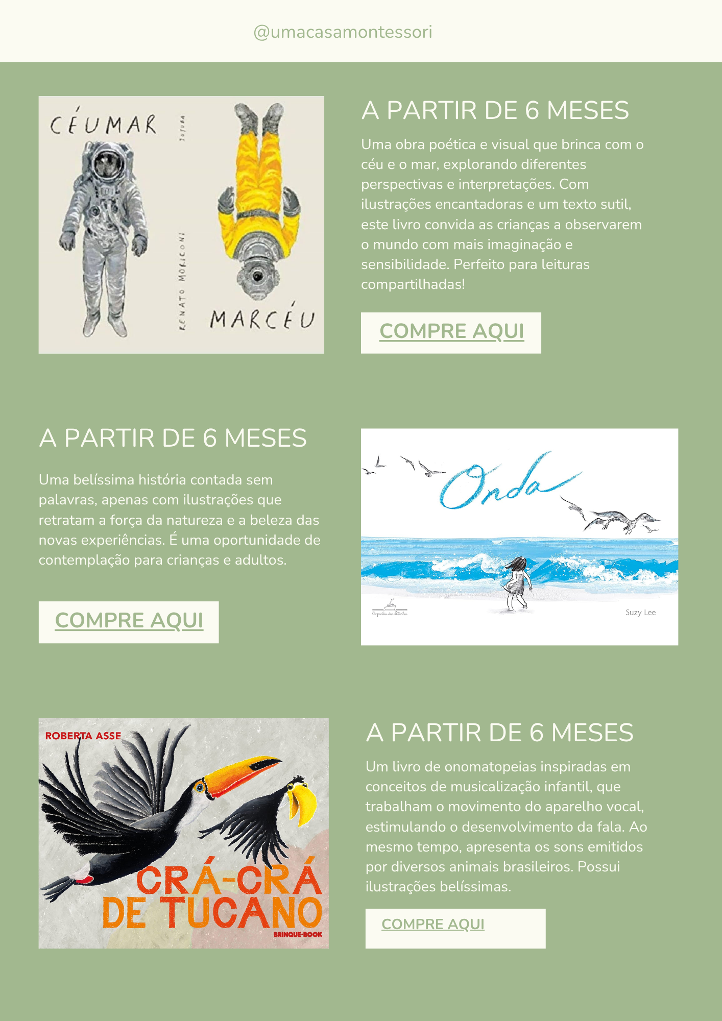 Seleção exclusiva de livros, brinquedos e utensílios inspirados no método Montessori. Cada produto acompanha um link de compra e você ainda tem acesso a cupons de descontos em lojas parceiras.